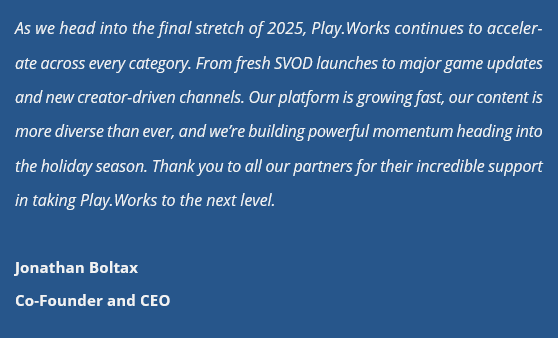 We’re excited to announce the launch of three new SVOD apps on Roku, featuring top-tier creator content. Fans can now subscribe to premium, ad-free experiences from SSundee, EYstreem, and Milo and Chip - all exclusively through Play.Works. It’s a major step forward in expanding our hybrid SVOD/AVOD models.