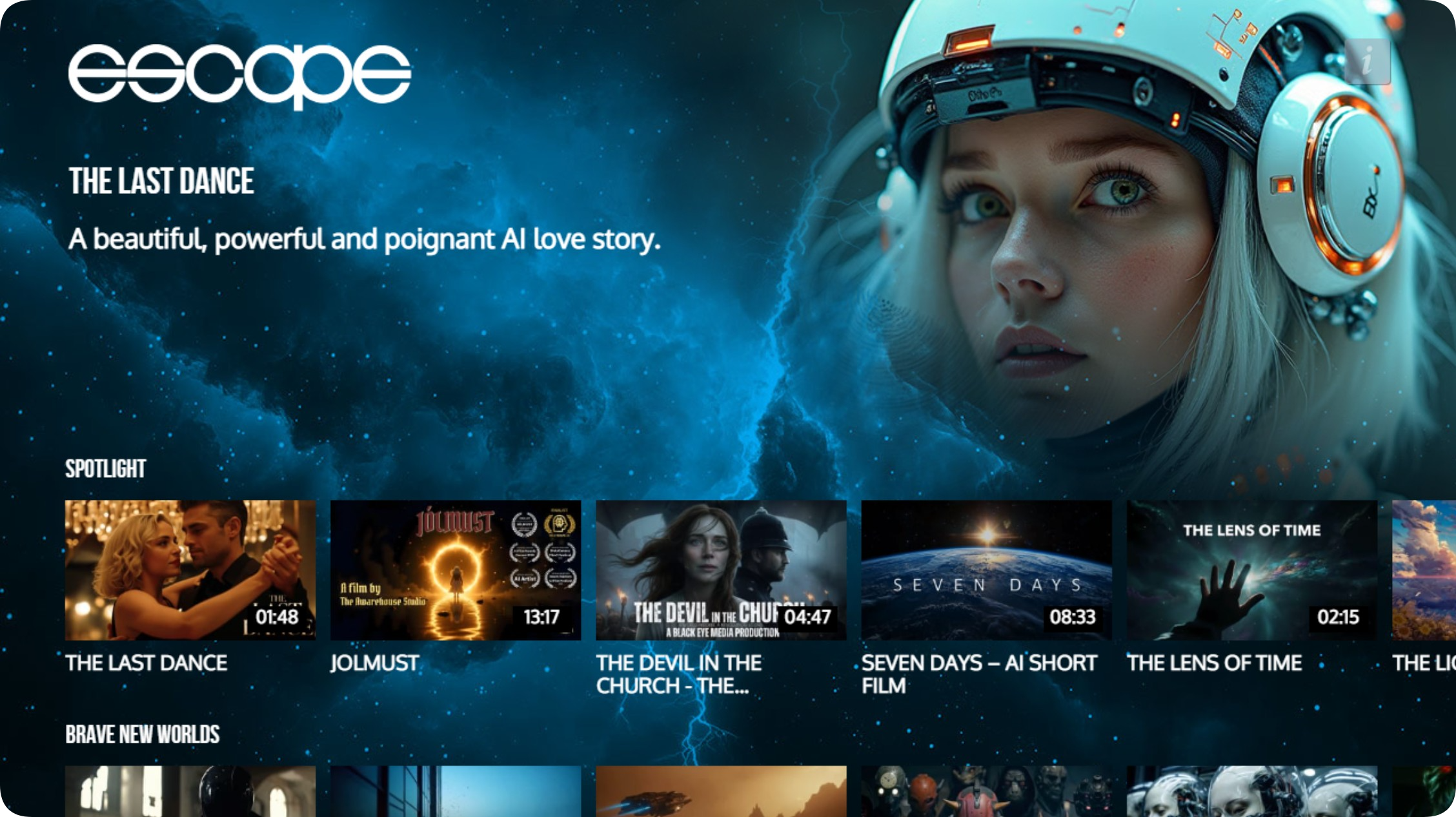 Following its Connected TV debut, escape.ai continues to gain momentum. The creator-driven cinematic universe founded by Academy Award–winning designer John Gaeta is now live across Roku and The Roku Channel, Amazon Fire TV, LG, and Samsung Smart TVs, reaching a combined total addressable market of over 400 million devices worldwide.