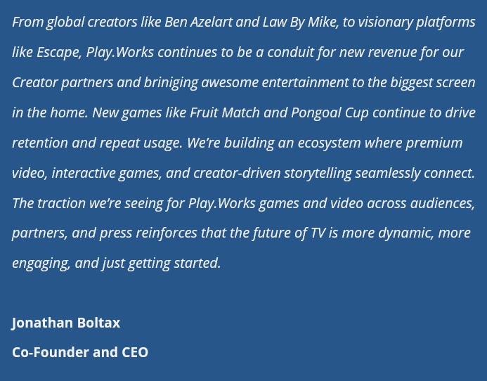 The launch has already been featured in Forbes, Variety, and GamesBeat, underscoring its impact as a next-generation entertainment destination on CTV.